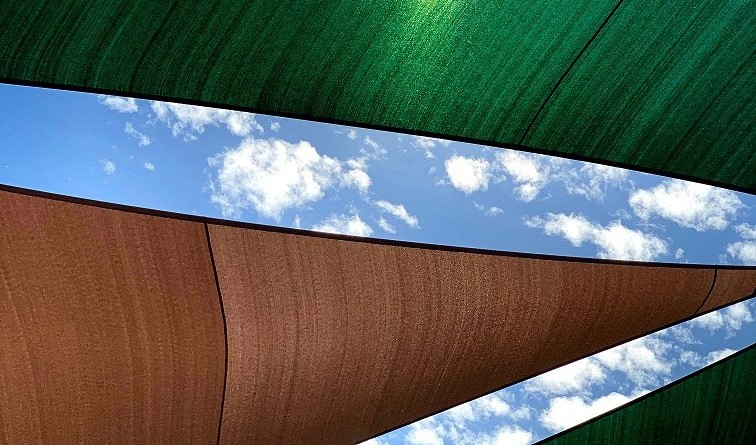 We do need to ensure however, that polyethylene textiles have adequate UV stabilisation. Resistance to UV degradation can differ somewhat depending upon colour and a UV stabiliser may be needed to assist some shades. To help us manage this risk and measure the performance of textile shade structures, assess their ability to survive a life cycle in Australian conditions, AS 4174:2018, Knitted and woven shade fabrics, is a standard that gives strong and tested guidance. This standard gives a simple accelerated weathering test method for predicting likely strength loss over time. This involves measuring initial textile strength followed up with a measurement after a 2000hr artificial daylight exposure.